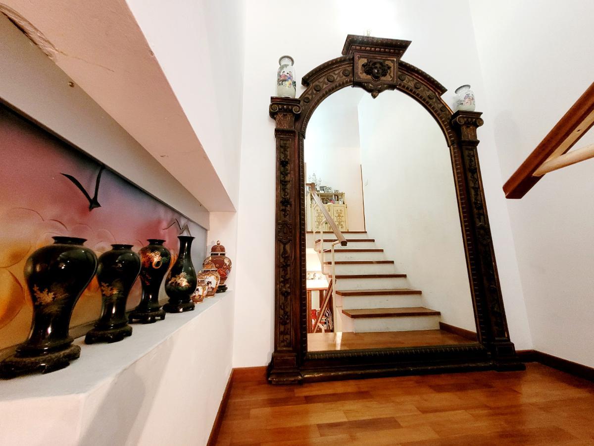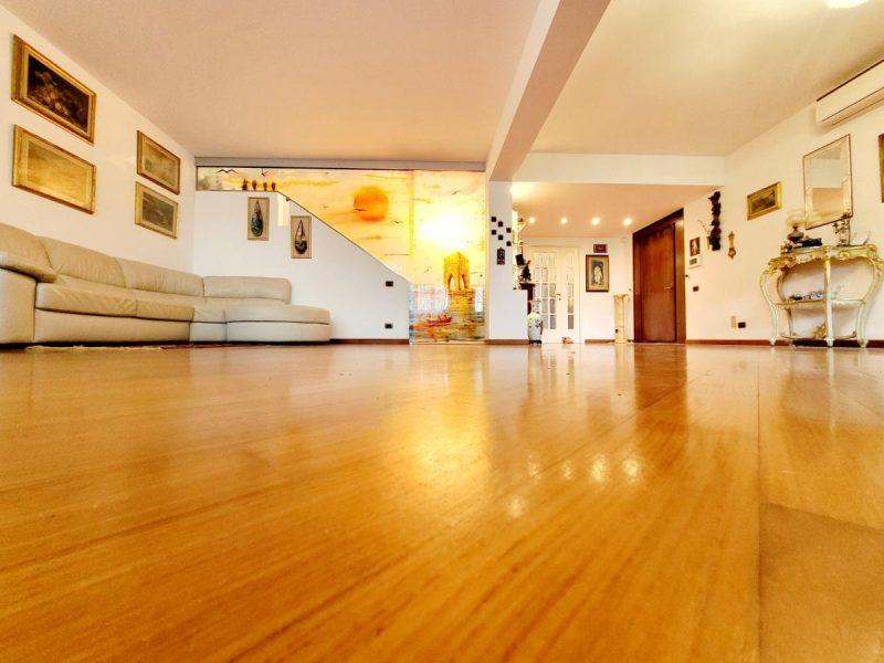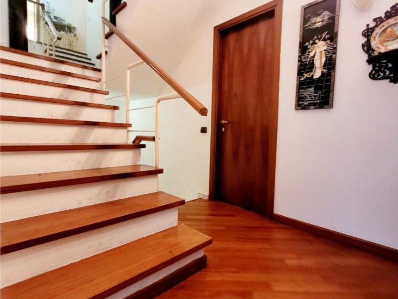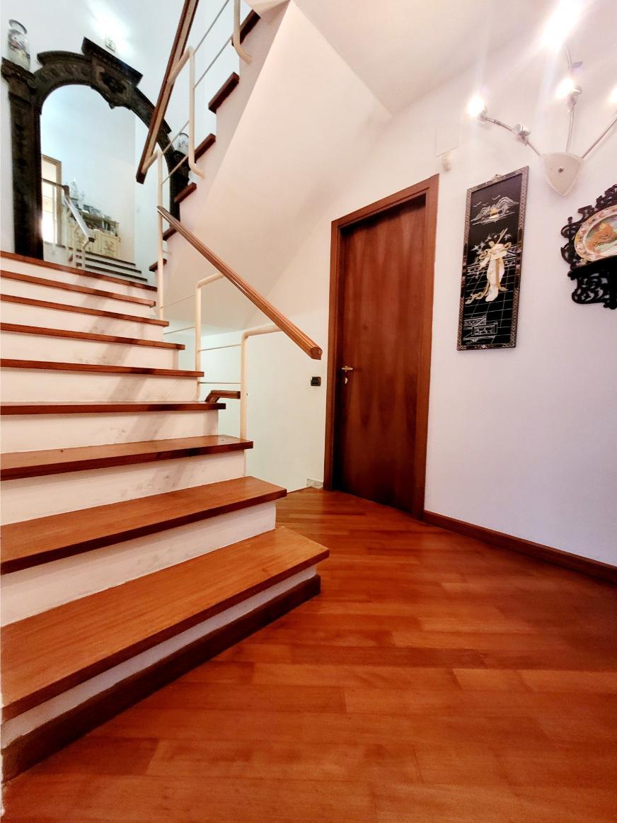 L’immobile è dotato di vetri antisfondamento, inferriate, aria condizionata in tutti gli ambienti, autoclave e addolcitore. I pavimenti sono in parquet nella zona giorno e notte, mentre le scale sono in marmo, ad eccezione del primo piano dove proseguono in parquet.