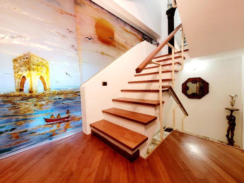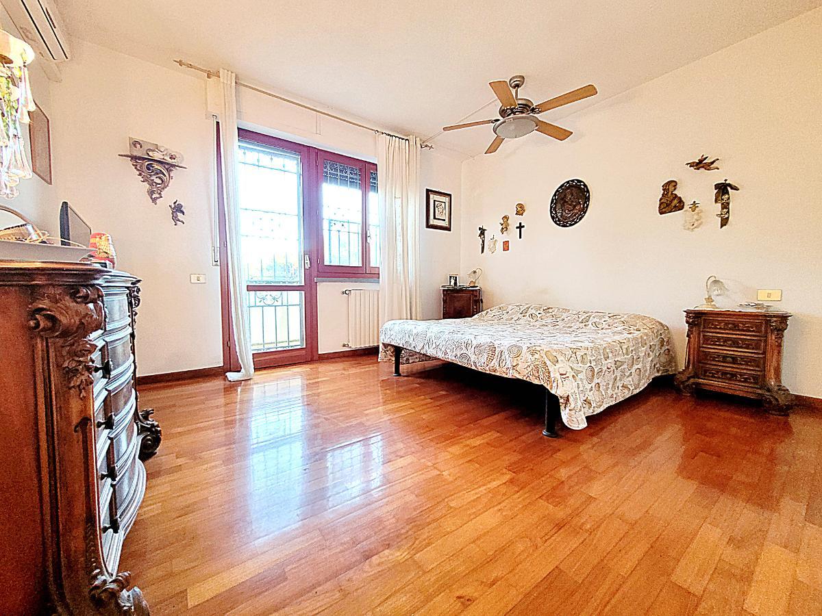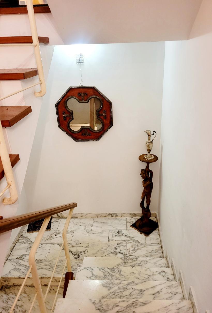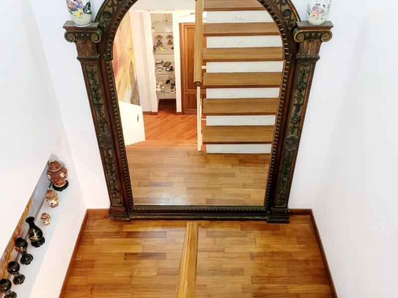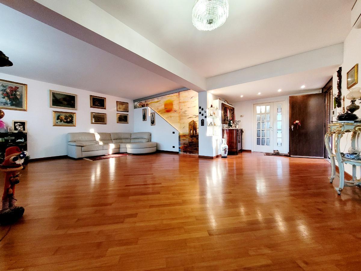L’immobile è dotato di vetri antisfondamento, inferriate, aria condizionata in tutti gli ambienti, autoclave e addolcitore. I pavimenti sono in parquet nella zona giorno e notte, mentre le scale sono in marmo, ad eccezione del primo piano dove proseguono in parquet.