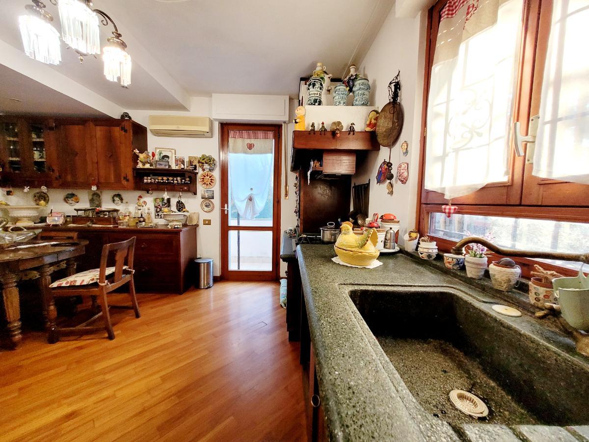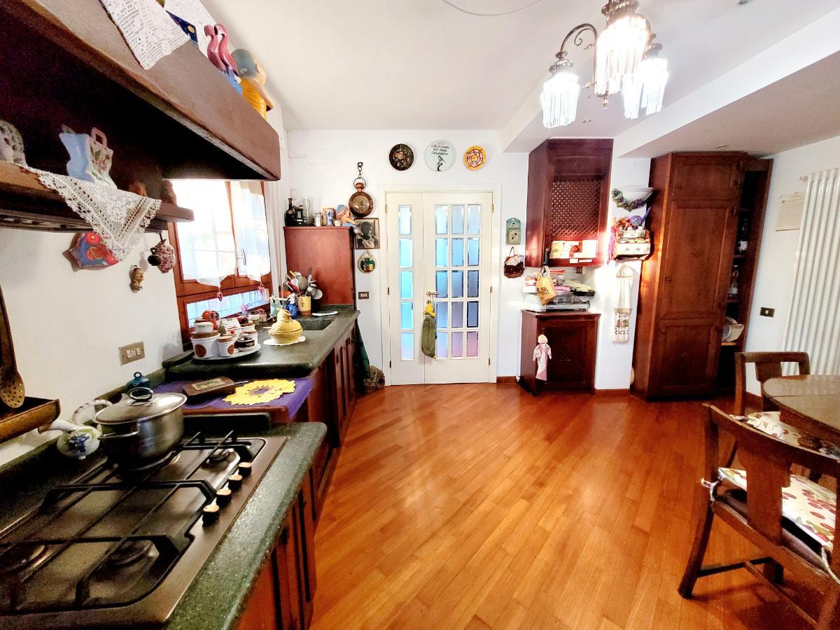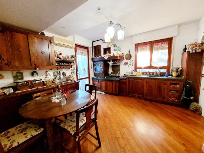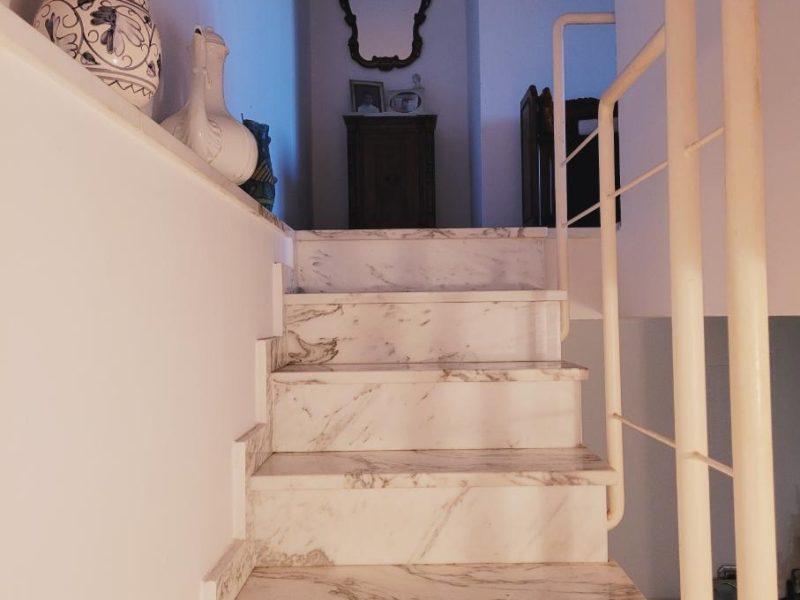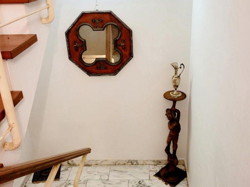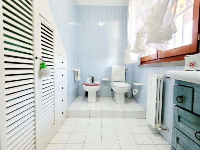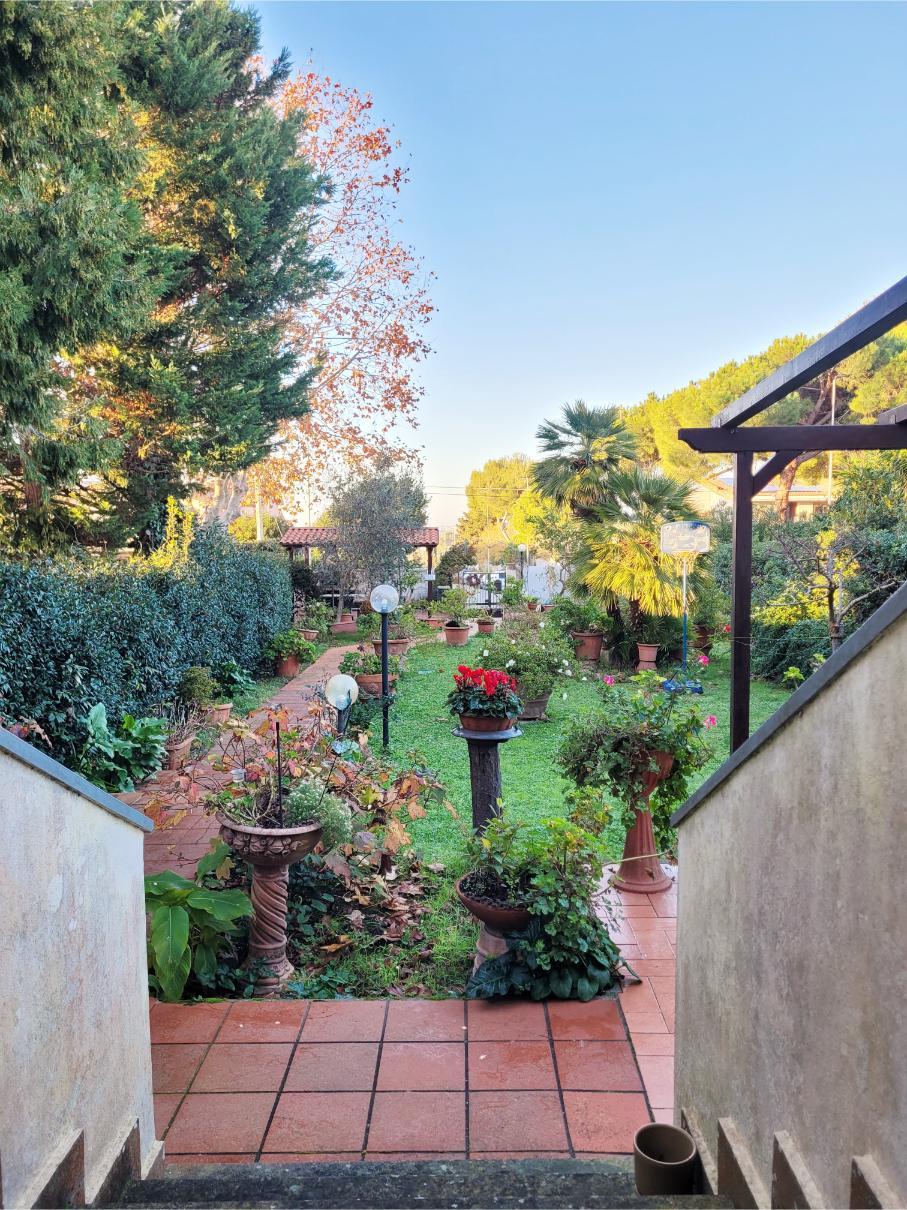 Al piano rialzato si accede tramite una scala esterna in muratura. L’ingresso si apre su un salone triplo molto luminoso, con accesso diretto al giardino. Nel salone troviamo anche una bellissima vetrage su misura raffigurante la Meloria di Livorno. Sempre su questo livello ci sono la cucina abitabile con terrazzo, un ampio locale lavanderia/ripostiglio e un bagno di servizio.
