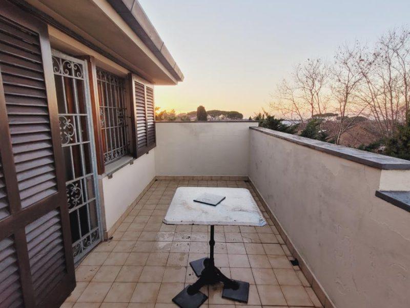 Salendo al primo piano, tramite una scala in parquet, si raggiunge la zona notte. Qui troviamo due camere matrimoniali, una camera media e due bagni finestrati. Ogni stanza ha accesso a due ampie terrazze abitabili, poste sui lati opposti della casa.